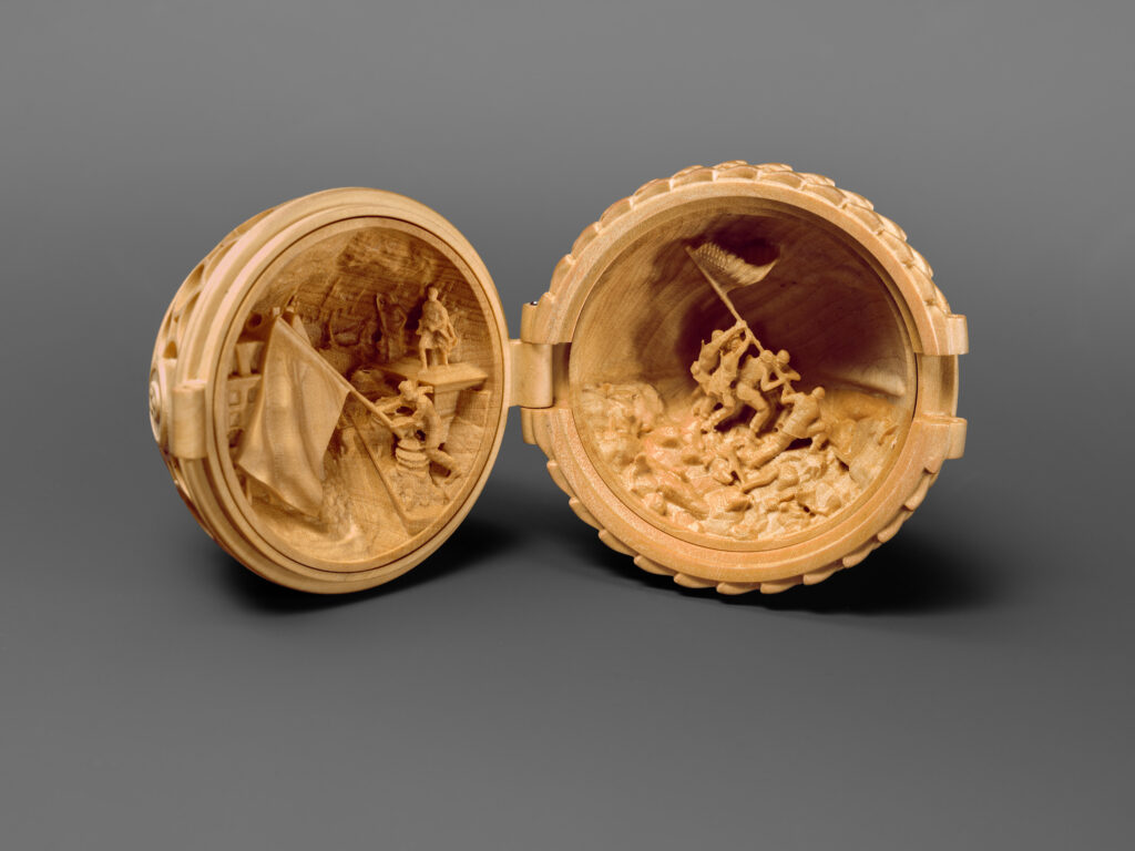 Solo show in NQ Gallery, Antwerpen Centraal staat het kunstwerk CARVED TIME Series of Contemporary Prayer Nuts: 8 uit buxushout gesneden gebedsnoten te gebruiken als hedendaags moreel kompas.